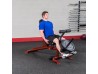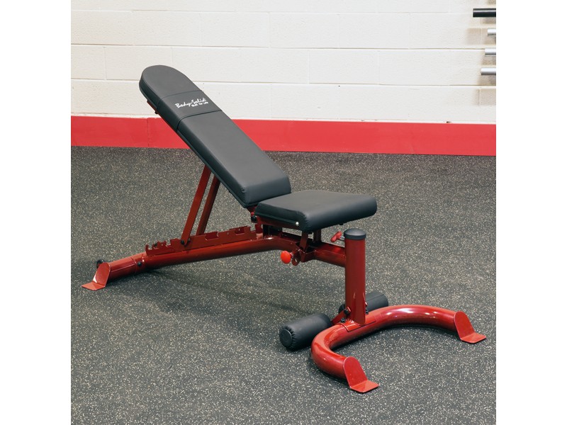 The ankle rollers can be left out of the way behind the front feet of the bench. When you're doing decline presses, swivel up the ankle rollers, lock it in place, and put your ankles behind them to stay secure from slipping down the back pad.