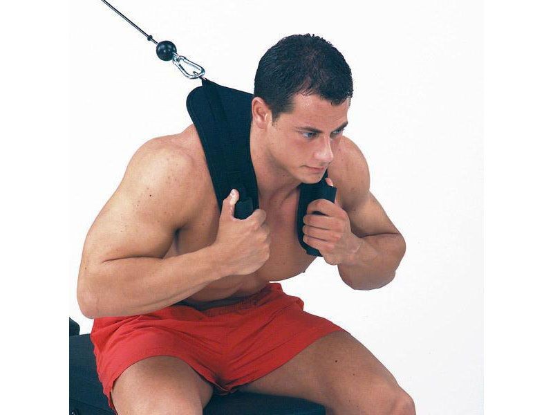 Extra-wide padded harness protects the neck, shoulders, back and chest while you concentrate on your abs and obliques. Comfortable foam grips offer quick and easy hand positioning. Heavy-duty solid steel D ring for strength and durability.