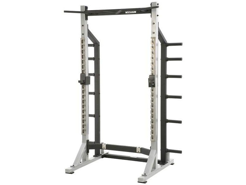 - Safety Spotter Arms - Fits on the front of the rack, enabling you to lift safely. 27" long, 2" tubular steel. Plastic wear guards run along the top of the arms. A single pin design fits into the hook plate in 3" on center increments.